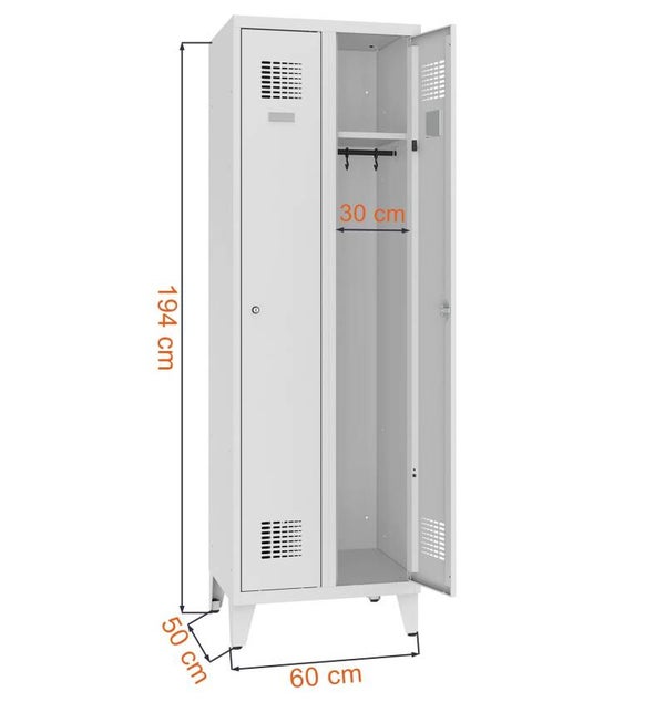 Stahlspind, Umkleidespind, 2-türig mit Füßen B600 mm Lx