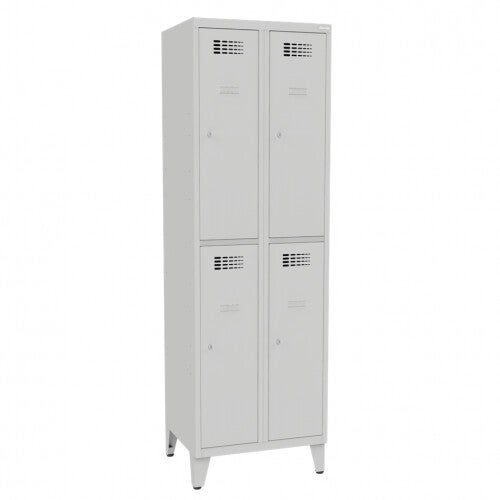 Doppelstöckiger Garderobenspind, 4 türig, 4 Abteile mit Füßen B600, Lx
