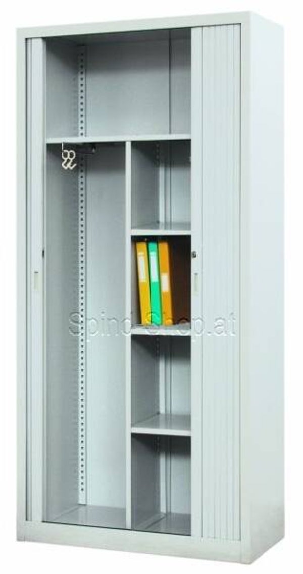 Aktenschrank, Rollladenschrank mit Garderobenabteil und 4 Fachböden, 1.000 mm Breite