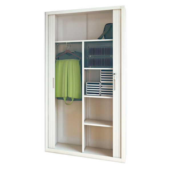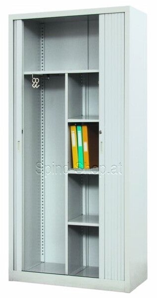 Aktenschrank, Rolladenschrank mit Garderobenabteil und 4 Fachböden, 1.200 mm Breite