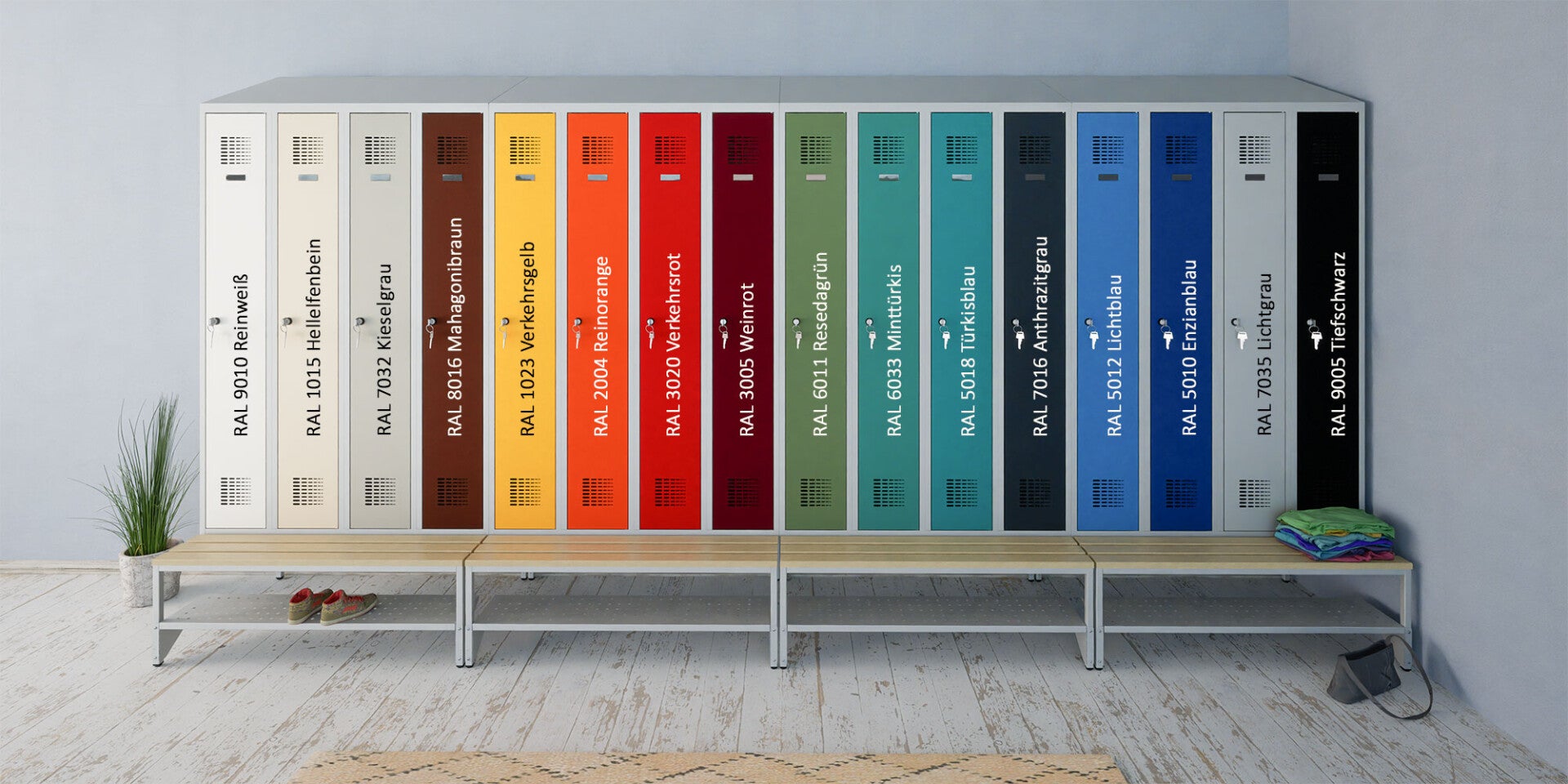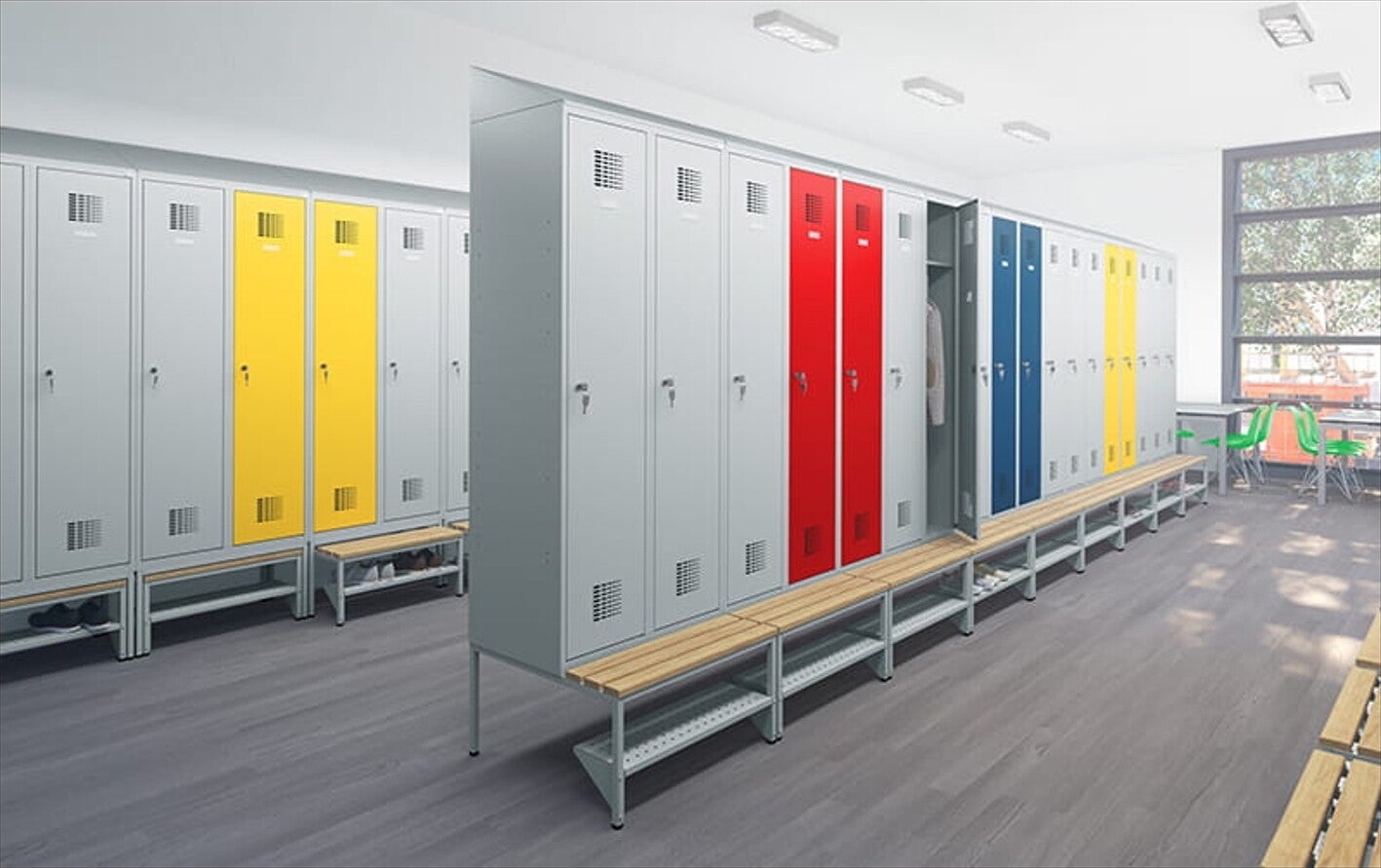 • Platzsparende Z-Spinde und Edelstahlschränke